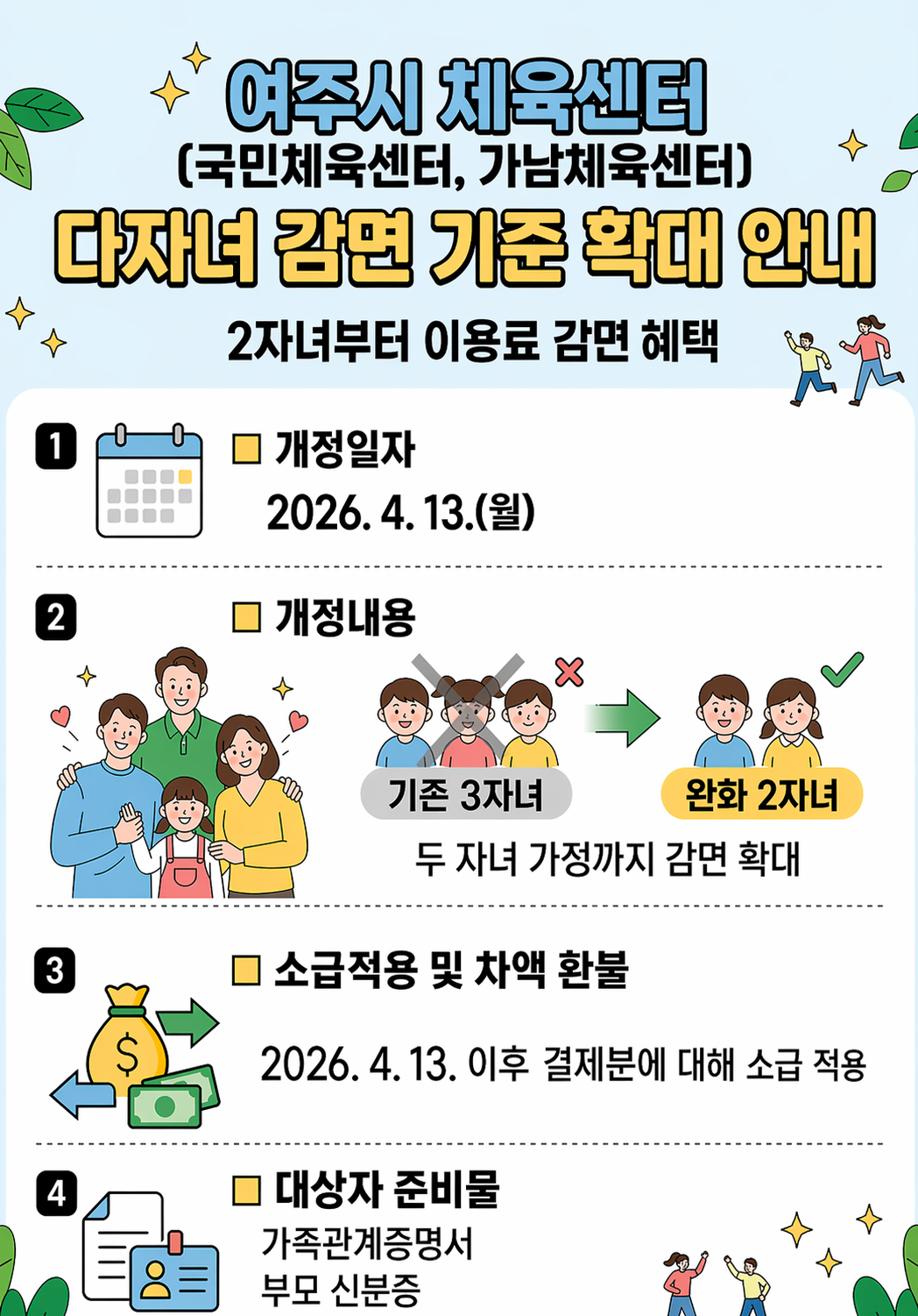여주시 체육센터 다자녀 감면 기준 확대 안내